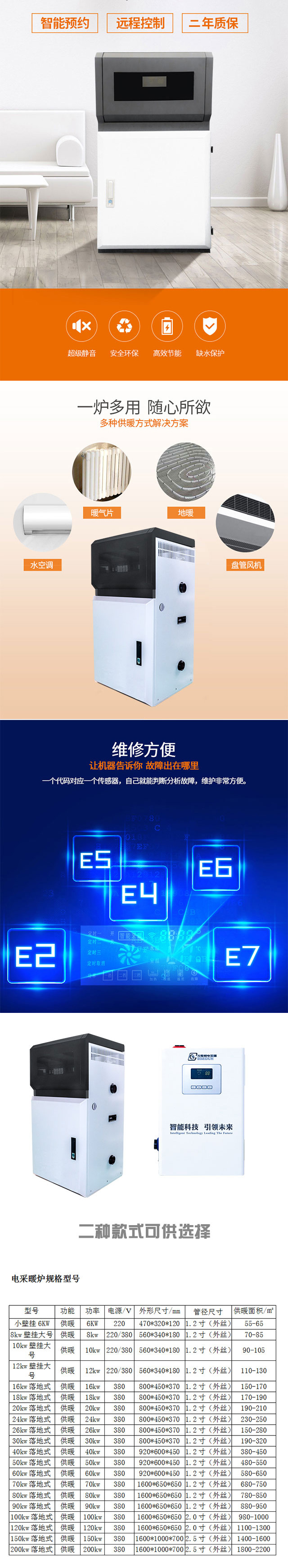 商用電采暖鍋爐的功率從50kW一直到更高1兆瓦。